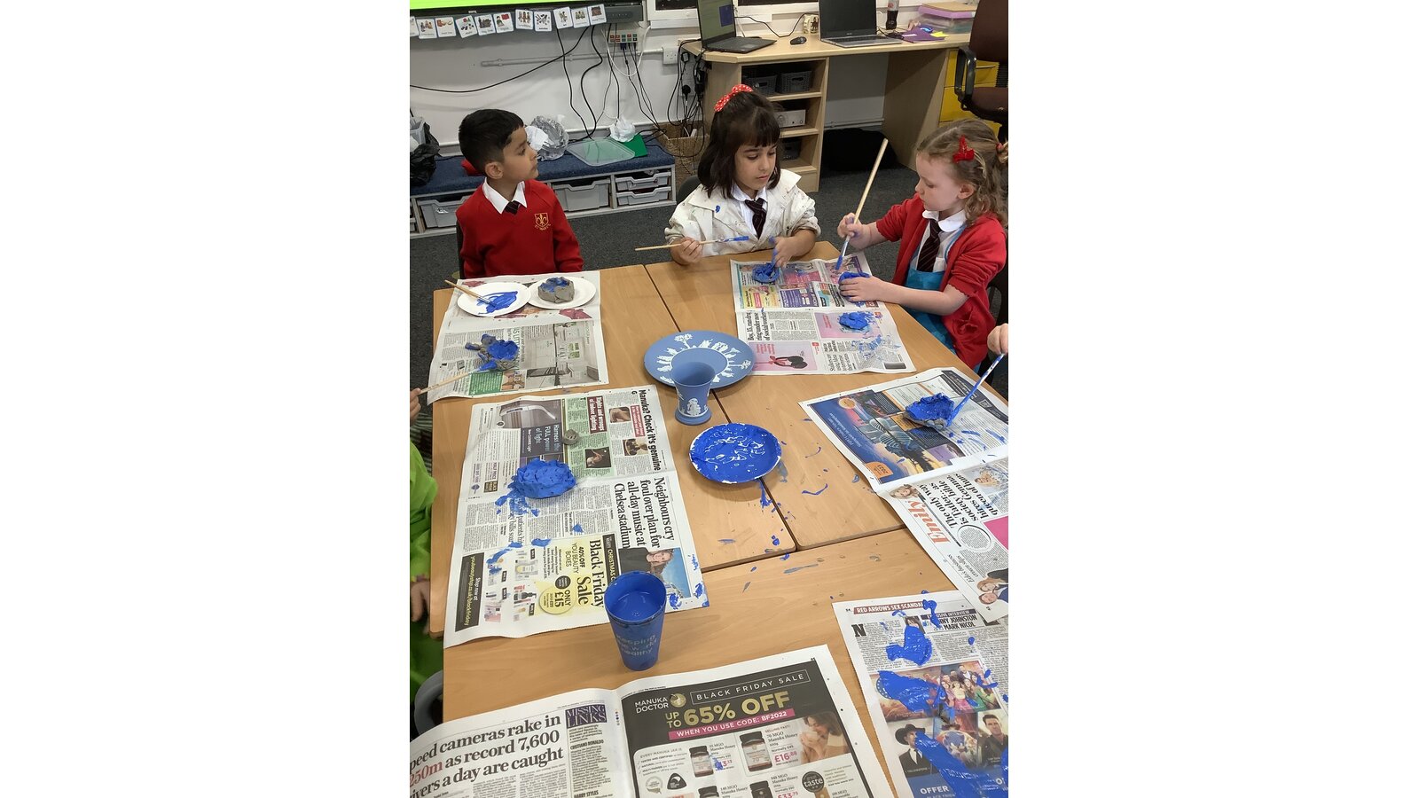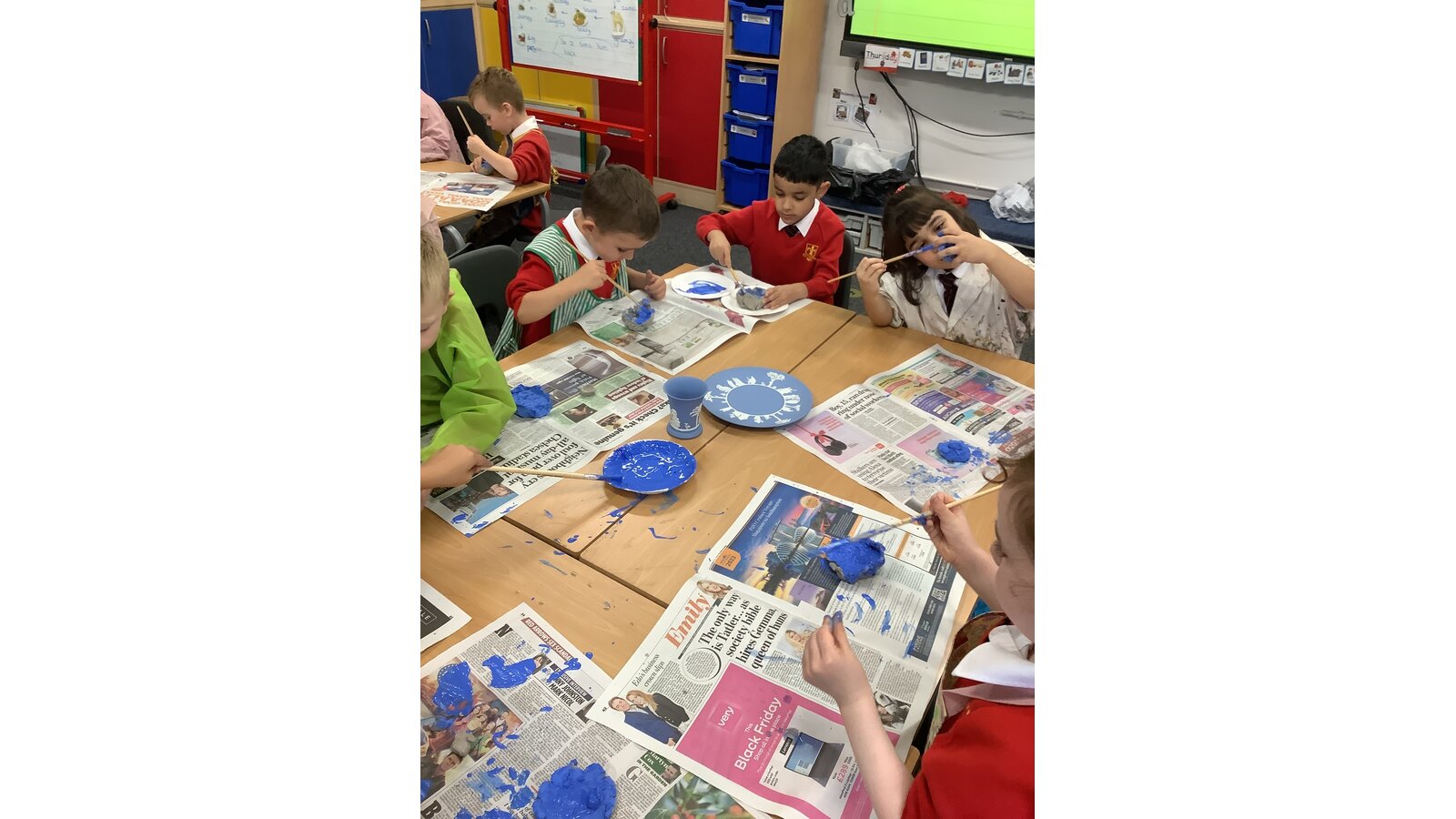 In art this half term we have been learning all about the work of Josiah Wedgwood. We have designed and made pottery based on his work and today we painted our creations with the ‘Wedgwood Blue’.