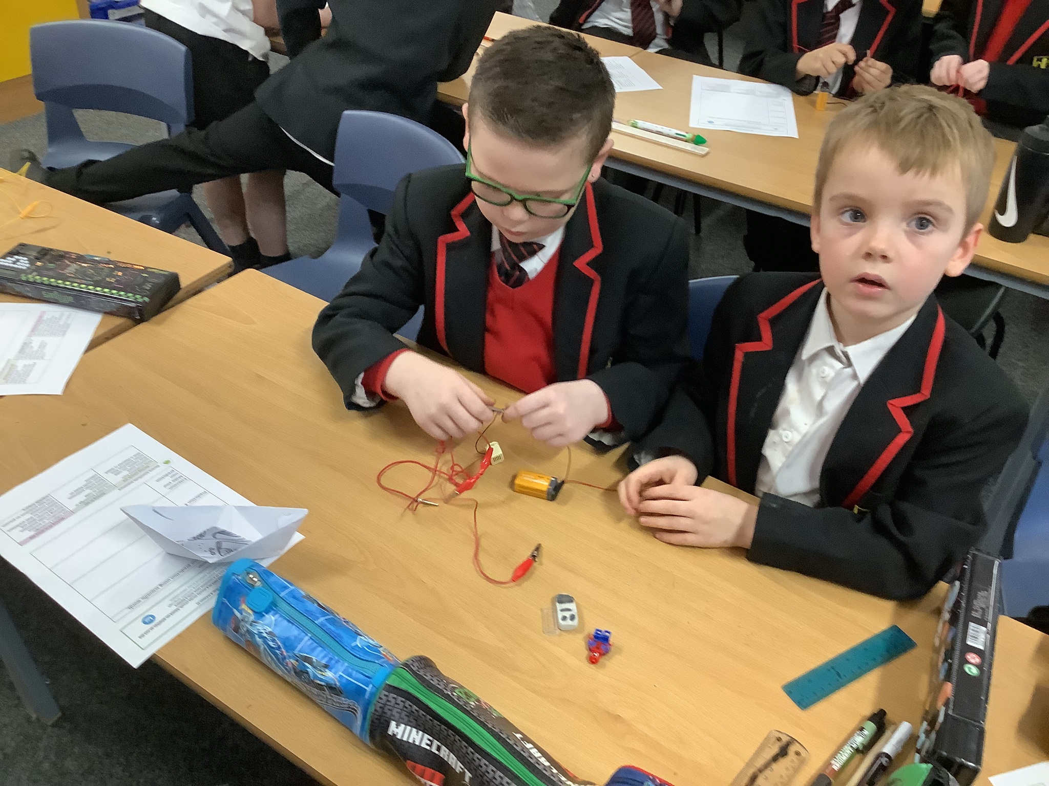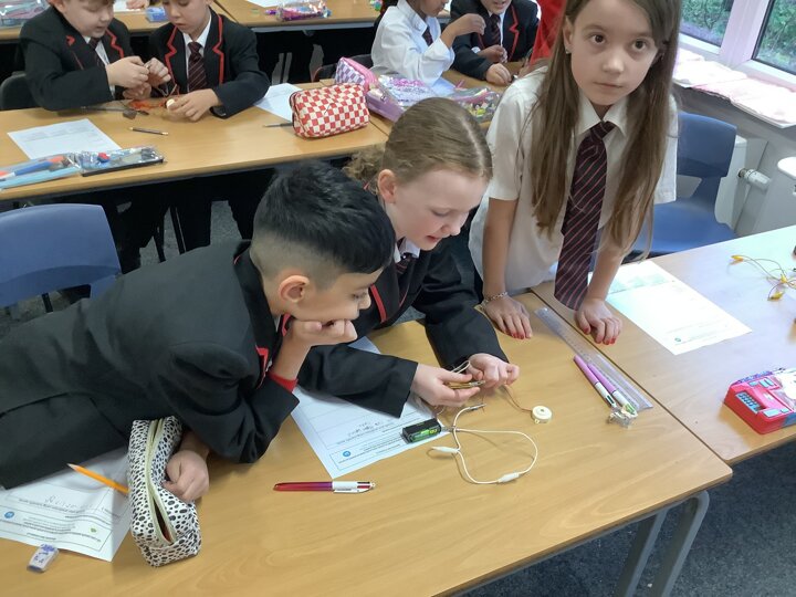 In science we have been learning about electricity. We have been learning how to make a circuit which include bulbs, buzzers and motors.