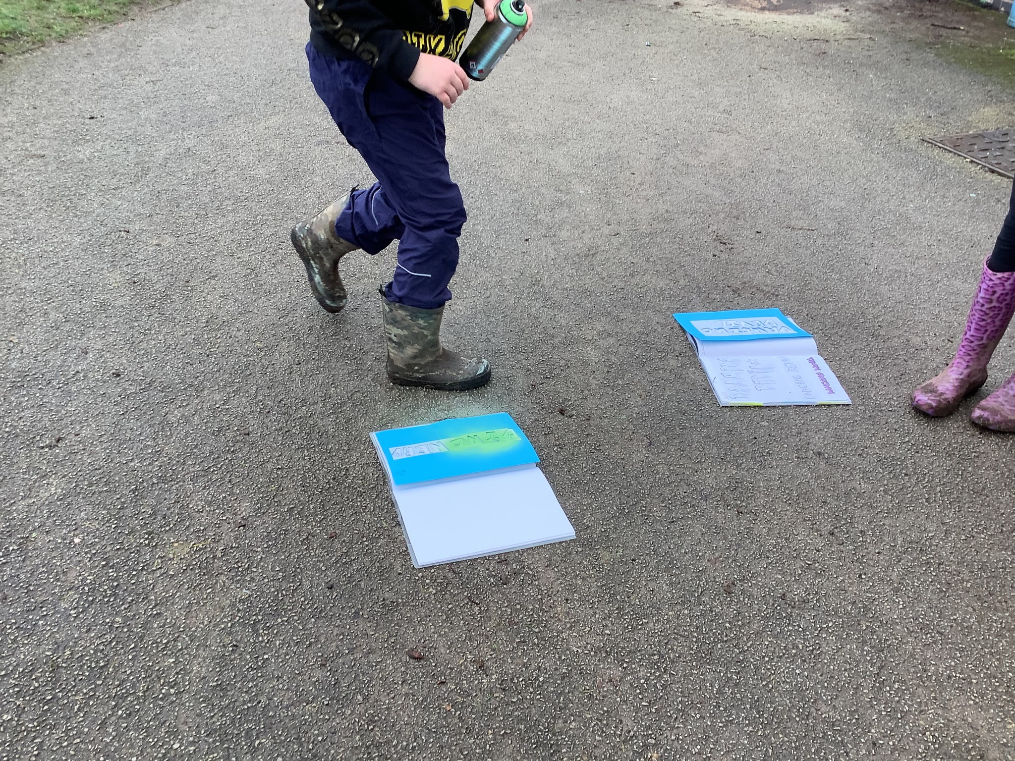 12 February 2026 Ms D Davis Class 4 Today we have had great fun experimenting with Spray Paint. I think that our “tags” look great. Graffiti Tags